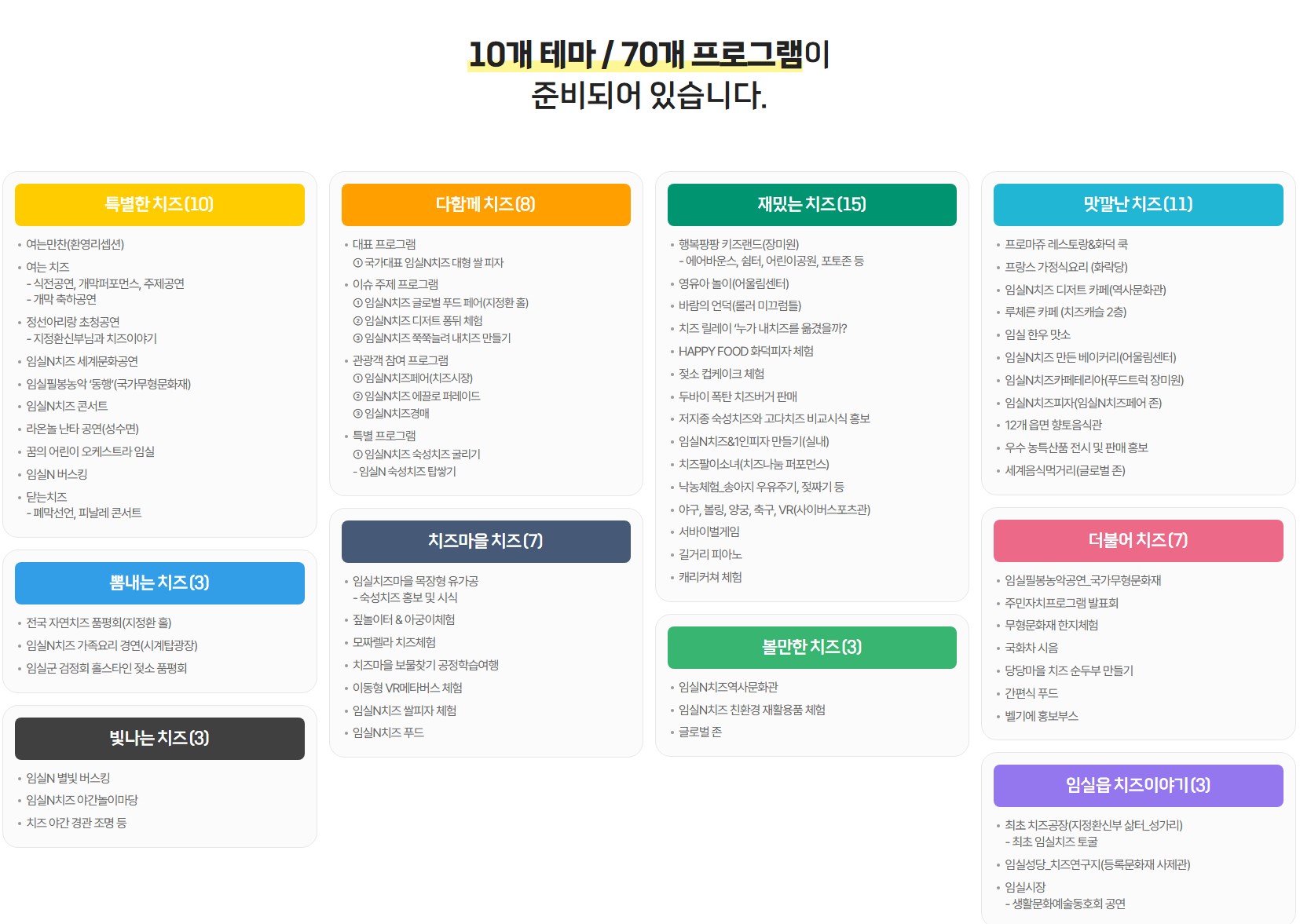 - 장소 : 전북 임실군 임실치즈테마파크 및 임실치즈마을 일원